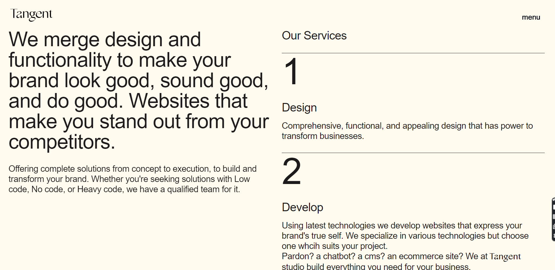 Understanding the importance of a strong brand identity and captivating website copy, we embarked on a collaborative journey with Tangent Studio. Our team immersed themselves in understanding Tangent Studio's brand essence, values, and target audience. Leveraging this knowledge, we developed a brand identity that captured their adaptability and friendliness, aligning it with their vision for growth. We also crafted website copy that conveyed their expertise and showcased their commitment to providing exceptional digital solutions.