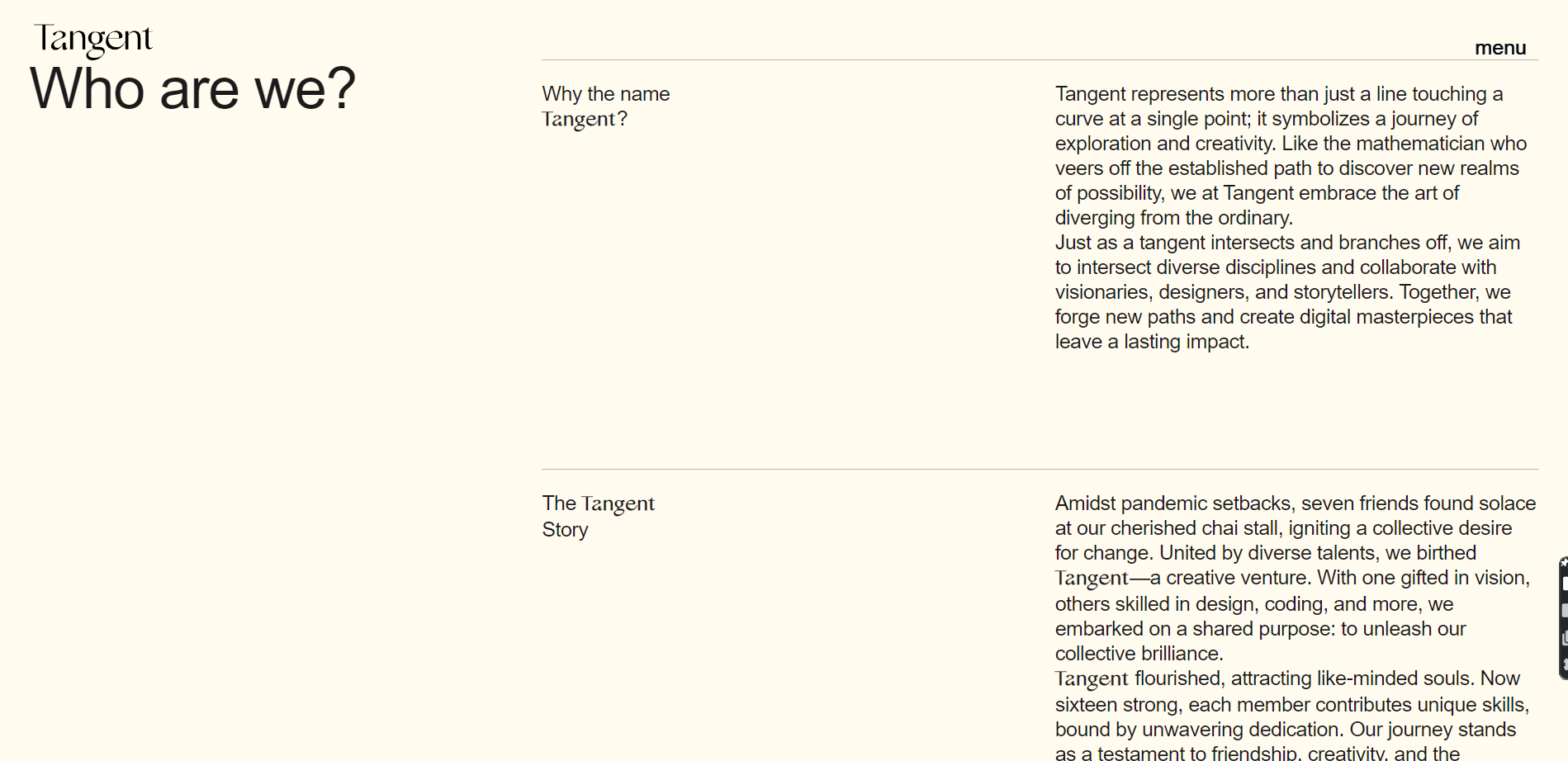 Our task was to create a strong brand identity and compelling website copy for Tangent Studio. We focused on the following key objectives: